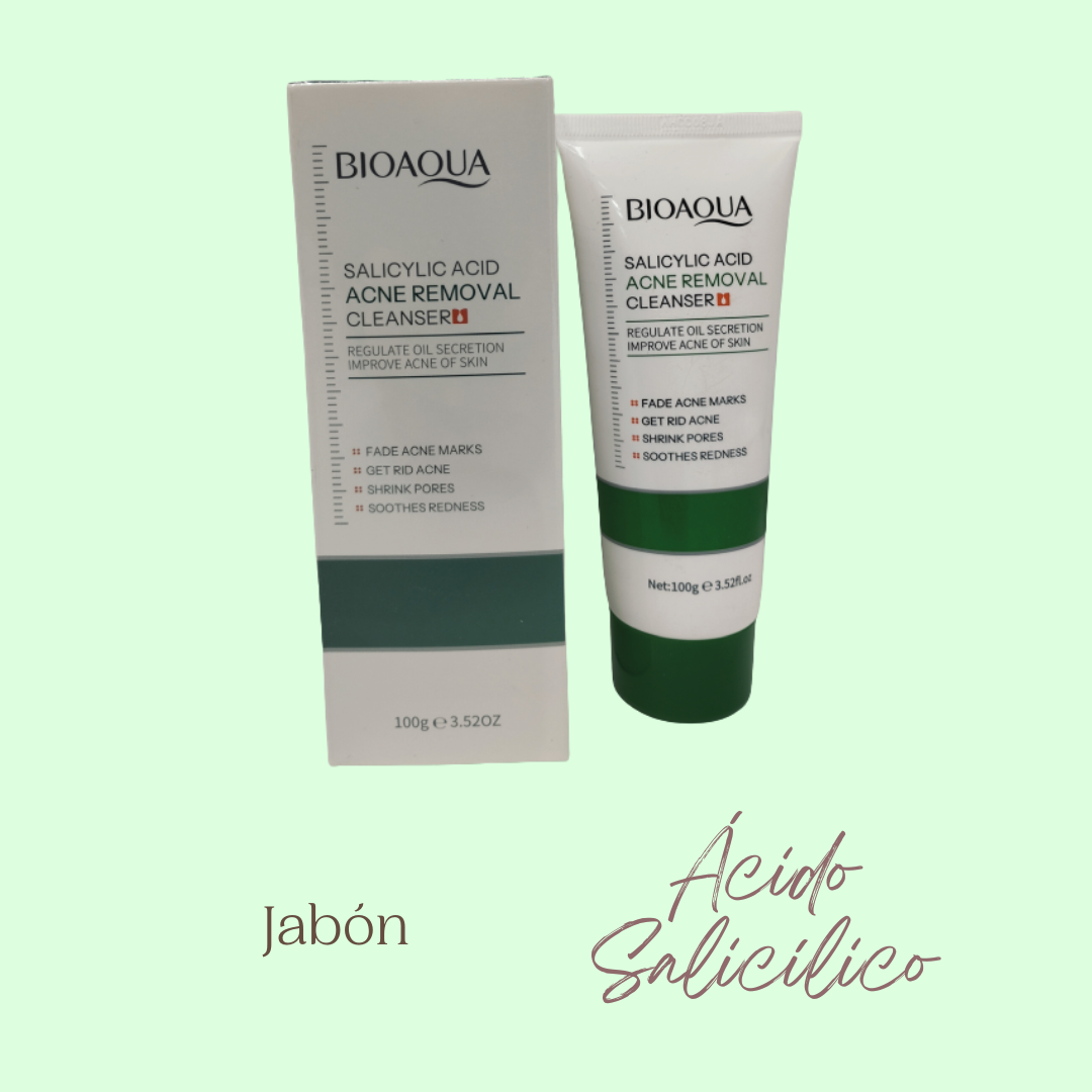 El ácido salicílico es un exfoliante que penetra en los poros, eliminando el exceso de grasa y células muertas. Ayuda a prevenir la formación de nuevos brotes de acné.